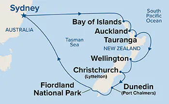 | 12 | 16 Dec 27 | Fiordland National Park (Scenic Cruising) | Arrive 10:00am Depart 7:00pm |